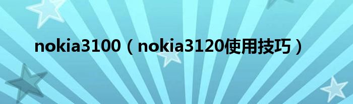 nokia3100(nokia3120使用技巧)