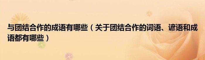 導讀 大家好,精選小編來為大家解答以上的問題。與團結合作的成語有哪些,關于團結合作的詞語、諺語和成語都有哪些很多人還不知道,現在讓我們一