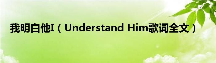 大家好,精選小編來為大家解答以上的問題。我明白他I,Understand Him歌詞全文很多人還不知道,現在讓我們一起來看看吧!