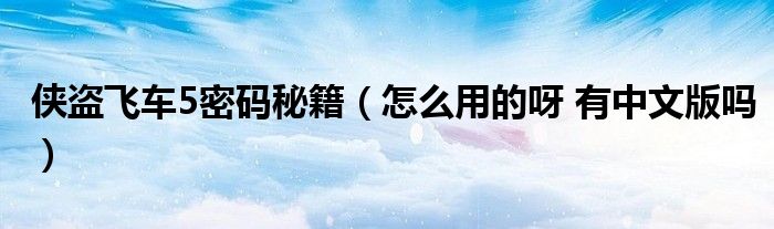 導讀 大家好,精選小編來為大家解答以上的問題。俠盜飛車5密碼秘籍,怎么用的呀 有中文版嗎很多人還不知道,現在讓我們一起來看看吧!直接進入