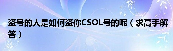 導讀 大家好,精選小編來為大家解答以上的問題。盜號的人是如何盜你CSOL號的呢,求高手解答很多人還不知道,現在讓我們一起來看看吧!不知道是什
