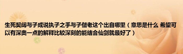 大家好,精選小編來為大家解答以上的問題。生死契闊與子成說執子之手與子偕老這個出自哪里,意思是什么 希望可以有深奧一點的解釋比較深刻的能結合仙劍就最好了很多人還不知道,現在讓我們一起來看看吧!