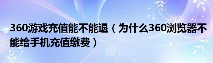 360游戲充值能不能退(為什么360瀏覽器不能給手機充值繳費)