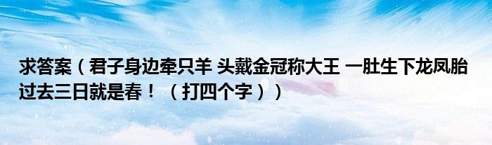 導讀 大家好,精選小編來為大家解答以上的問題。求答案,君子身邊牽只羊 頭戴金冠稱大王 一肚生下龍鳳胎 過去三日就是春! ,打四個字很多人