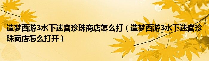 造夢西游3水下迷宮珍珠商店怎么打(造夢西游3水下迷宮珍珠商店怎么打開)