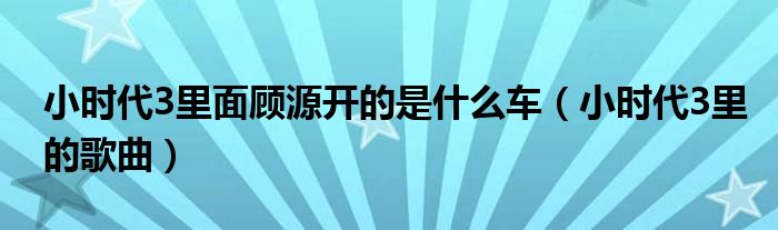 大家好,精選小編來為大家解答以上的問題。小時代3里面顧源開的是什么車,小時代3里的歌曲很多人還不知道,現在讓我們一起來看看吧!