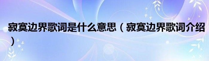 寂寞邊界歌詞是什么意思(寂寞邊界歌詞介紹)