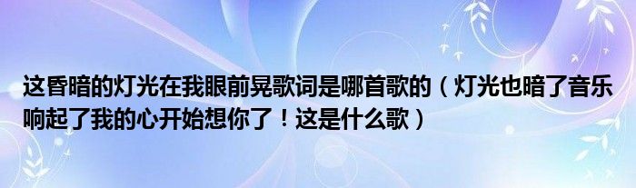 這昏暗的燈光在我眼前晃歌詞是哪首歌的(燈光也暗了音樂響起了我的心開始想你了!這是什么歌)