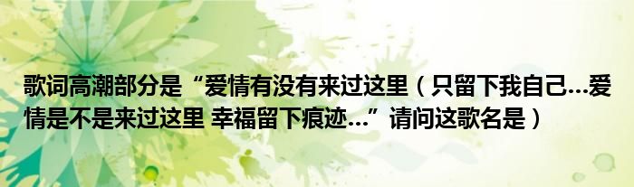 歌詞高潮部分是“愛情有沒有來過這里(只留下我自己…愛情是不是來過這里 幸福留下痕跡…”請問這歌名是)