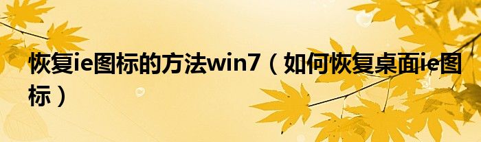 恢復ie圖標的方法win7(如何恢復桌面ie圖標)