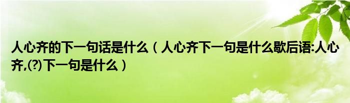 人心齊的下一句話是什么(人心齊下一句是什么歇后語:人心齊,(?)下一句是什么)