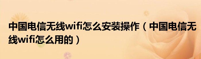 導讀 大家好,精選小編來為大家解答以上的問題。中國電信無線wifi怎么安裝操作,中國電信無線wifi怎么用的很多人還不知道,現在讓我們一起來看看