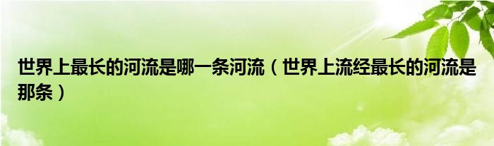 世界上最長的河流是哪一條河流(世界上流經最長的河流是那條)