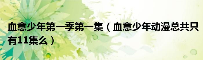 導讀 大家好,精選小編來為大家解答以上的問題。血意少年第一季第一集,血意少年動漫總共只有11集么很多人還不知道,現在讓我們一起來看看吧!購