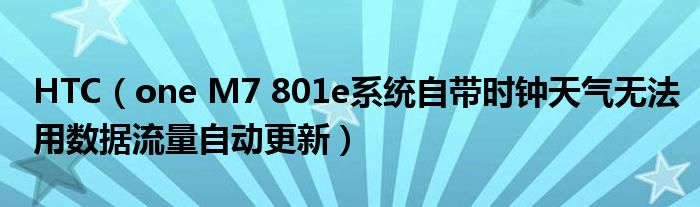 大家好,精選小編來為大家解答以上的問題。HTC,one M7 801e系統自帶時鐘天氣無法用數據流量自動更新很多人還不知道,現在讓我們一起來看看吧!
