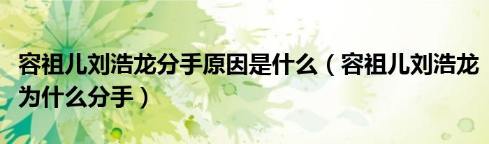 容祖兒劉浩龍分手原因是什么(容祖兒劉浩龍為什么分手)