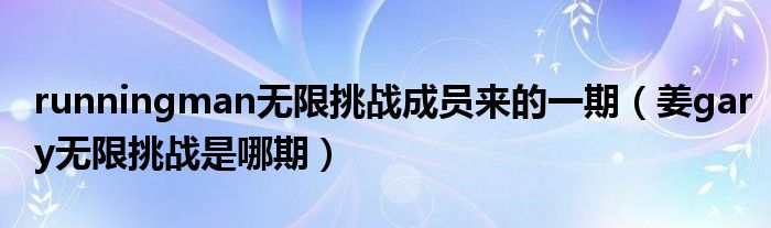 導讀 大家好,精選小編來為大家解答以上的問題。runningman無限挑戰成員來的一期,姜gary無限挑戰是哪期很多人還不知道,現在讓我們一起來看看吧