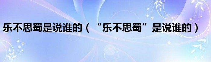 樂不思蜀是說誰的(“樂不思蜀”是說誰的)
