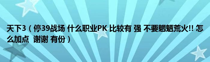 天下3(停39戰場 什么職業PK 比較有 強 不要魍魎荒火!! 怎么加點 謝謝 有份)