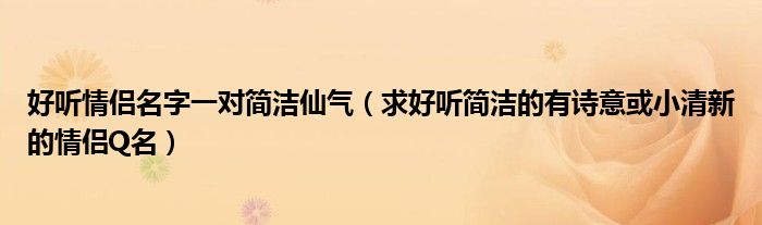 好聽情侶名字一對簡潔仙氣(求好聽簡潔的有詩意或小清新的情侶Q名)