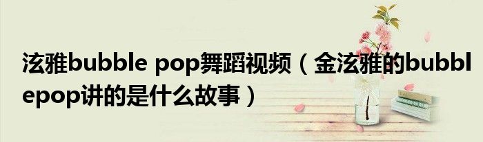 導讀 大家好,精選小編來為大家解答以上的問題。泫雅bubble pop舞蹈視頻,金泫雅的bubblepop講的是什么故事很多人還不知道,現在讓我們一起來看