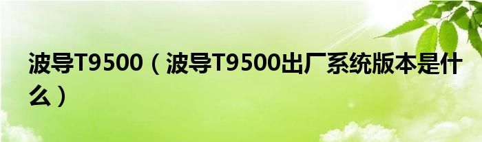 波導T9500(波導T9500出廠系統版本是什么)