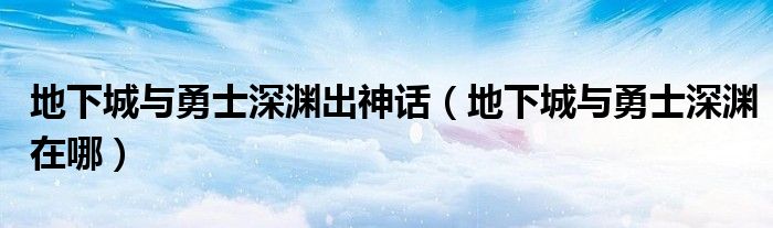 地下城與勇士深淵出神話(地下城與勇士深淵在哪)