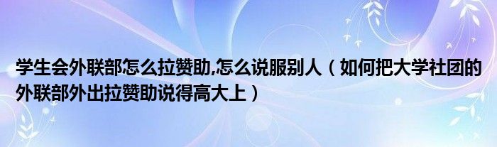 學生會外聯部怎么拉贊助,怎么說服別人(如何把大學社團的外聯部外出拉贊助說得高大上)