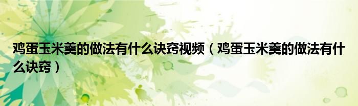 雞蛋玉米羹的做法有什么訣竅視頻(雞蛋玉米羹的做法有什么訣竅)