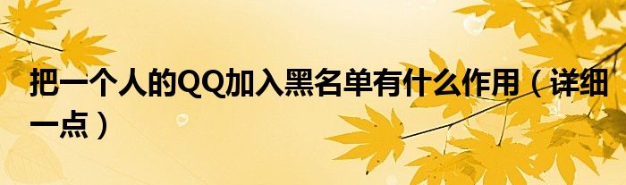 把一個人的QQ加入黑名單有什么作用(詳細一點)