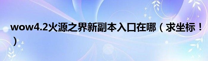 wow4.2火源之界新副本入口在哪(求坐標!)