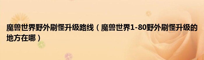 魔獸世界野外刷怪升級路線(魔獸世界1-80野外刷怪升級的地方在哪)