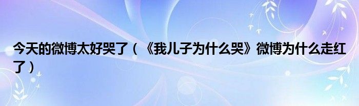 今天的微博太好哭了(《我兒子為什么哭》微博為什么走紅了)