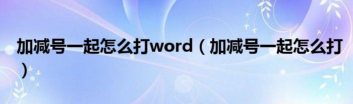 大家好,精選小編來為大家解答以上的問題。加減號一起怎么打word,加減號一起怎么打很多人還不知道,現在讓我們一起來看看吧!