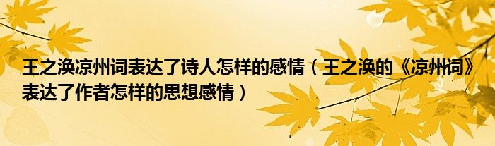 王之渙涼州詞表達了詩人怎樣的感情(王之渙的《涼州詞》表達了作者怎樣的思想感情)