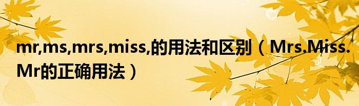 mr,ms,mrs,miss,的用法和區別(Mrs.Miss.Mr的正確用法)