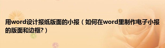 用word設計報紙版面的小報(如何在word里制作電子小報的版面和邊框?)