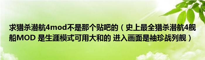 導讀 大家好,精選小編來為大家解答以上的問題。求獵殺潛航4mod不是那個貼吧的,史上最全獵殺潛航4艦船MOD 是生涯模式可用大和的 進入畫面是袖
