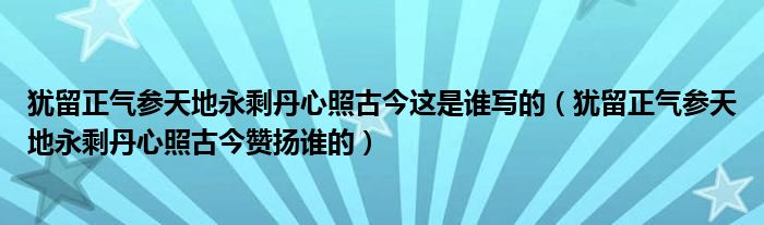 猶留正氣參天地永剩丹心照古今這是誰寫的(猶留正氣參天地永剩丹心照古今贊揚誰的)