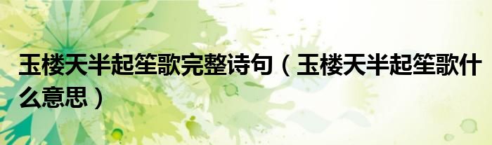 玉樓天半起笙歌完整詩句(玉樓天半起笙歌什么意思)