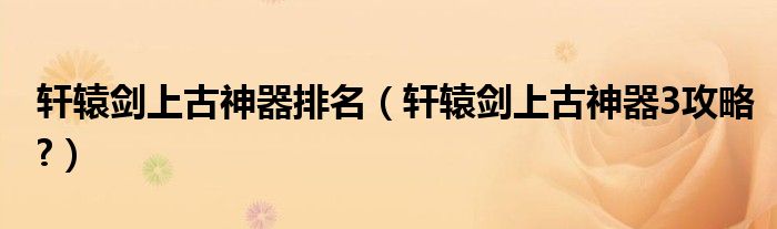 軒轅劍上古神器排名(軒轅劍上古神器3攻略?)