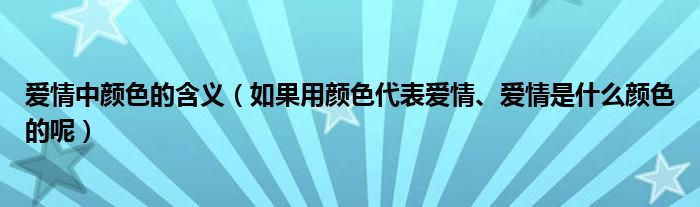 導讀 大家好,精選小編來為大家解答以上的問題。愛情中顏色的含義,如果用顏色代表愛情、愛情是什么顏色的呢很多人還不知道,現在讓我們一起來看