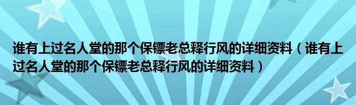 誰有上過名人堂的那個保鏢老總釋行風的詳細資料(誰有上過名人堂的那個保鏢老總釋行風的詳細資料)