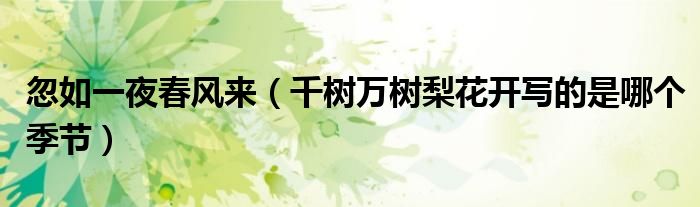 忽如一夜春風來(千樹萬樹梨花開寫的是哪個季節)
