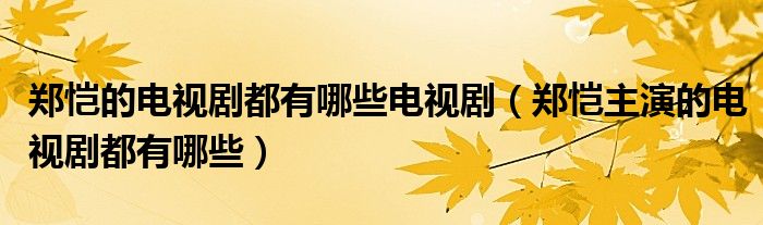 鄭愷的電視劇都有哪些電視劇(鄭愷主演的電視劇都有哪些)