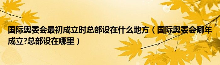 大家好,精選小編來為大家解答以上的問題。國際奧委會最初成立時總部設在什么地方,國際奧委會哪年成立?總部設在哪里很多人還不知道,現在讓我們一起來看看吧!