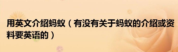 導讀 大家好,精選小編來為大家解答以上的問題。用英文介紹螞蟻,有沒有關于螞蟻的介紹或資料要英語的很多人還不知道,現在讓我們一起來看看吧!