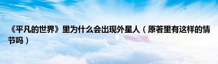 導讀 大家好,精選小編來為大家解答以上的問題。《平凡的世界》里為什么會出現外星人,原著里有這樣的情節嗎很多人還不知道,現在讓我們一起來看