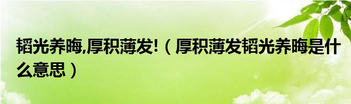 韜光養晦,厚積薄發!(厚積薄發韜光養晦是什么意思)