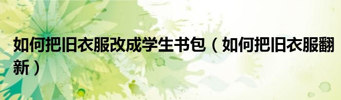 如何把舊衣服改成學生書包(如何把舊衣服翻新)